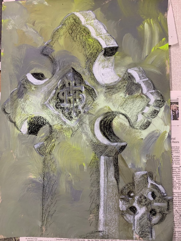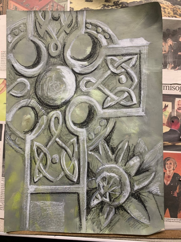 I know it might seem like a strange subject for these works of art but Lawnswood Cemetery in north Leeds has some amazing gravestones to rival any sculpture park in my opinion. This week we used a background covered in emulsion paint with black and white oil pastel over the top to create the highlights and shadows. Fabulous work from you all once again! Well done everyone and thank you so much for absolutely giving it your all this term and producing such brilliant pictures. It’s been a pleasure to see.