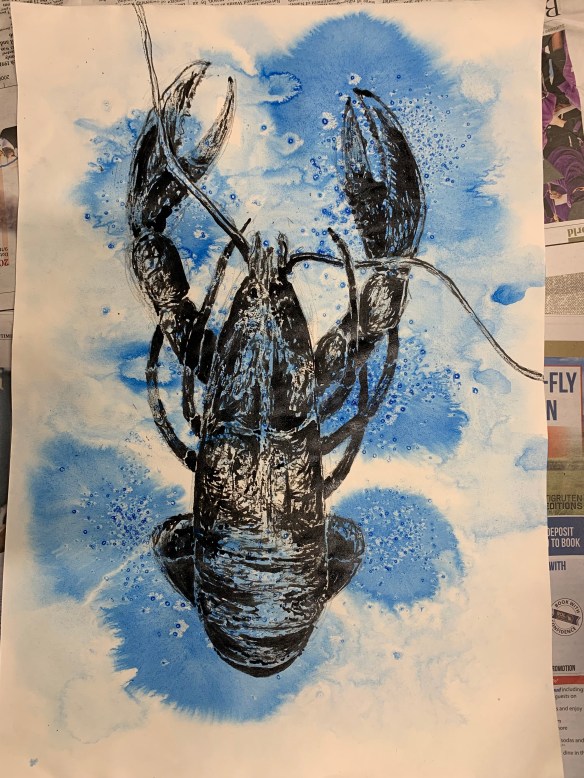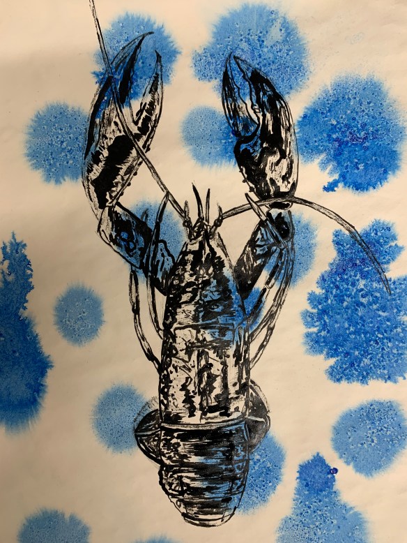 Wow! Incredible work this week folks and you did it all with just some Indian ink and a stick. Yep, a “common or garden” stick (from my garden to be precise). I think this was a really difficult challenge to throw at you but I knew you could handle it. Well done everyone on all these lovely lobsters!
