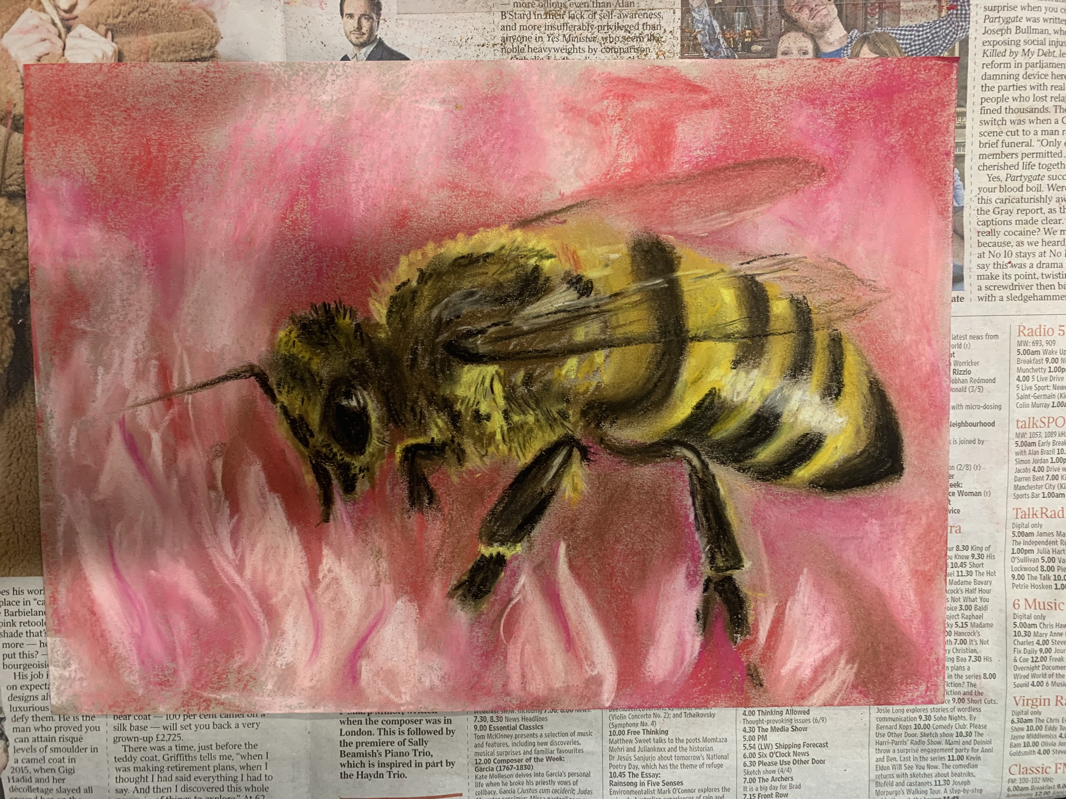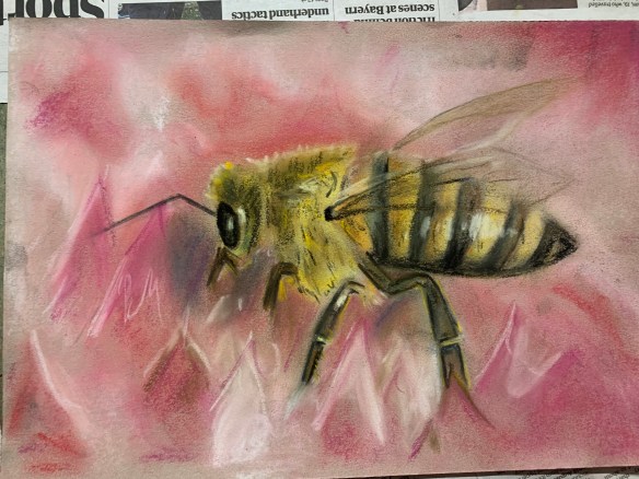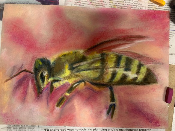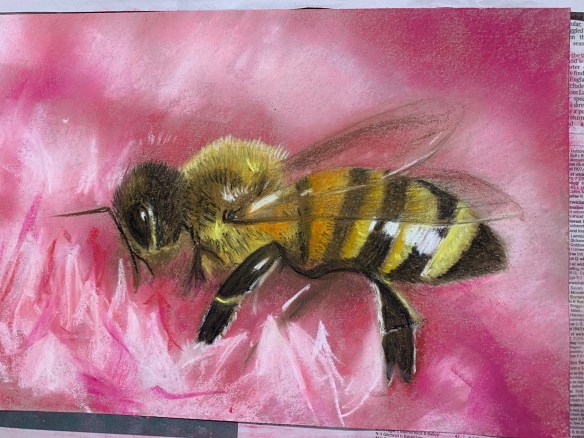 Another pretty messy, smudgy lesson but totally worth it for these fantastic bee drawings using soft pastel. Quite a tricky one this week – lots of layers to build up and lots of technique to master. It was great to see your confidence grow with this technique in just one lesson.