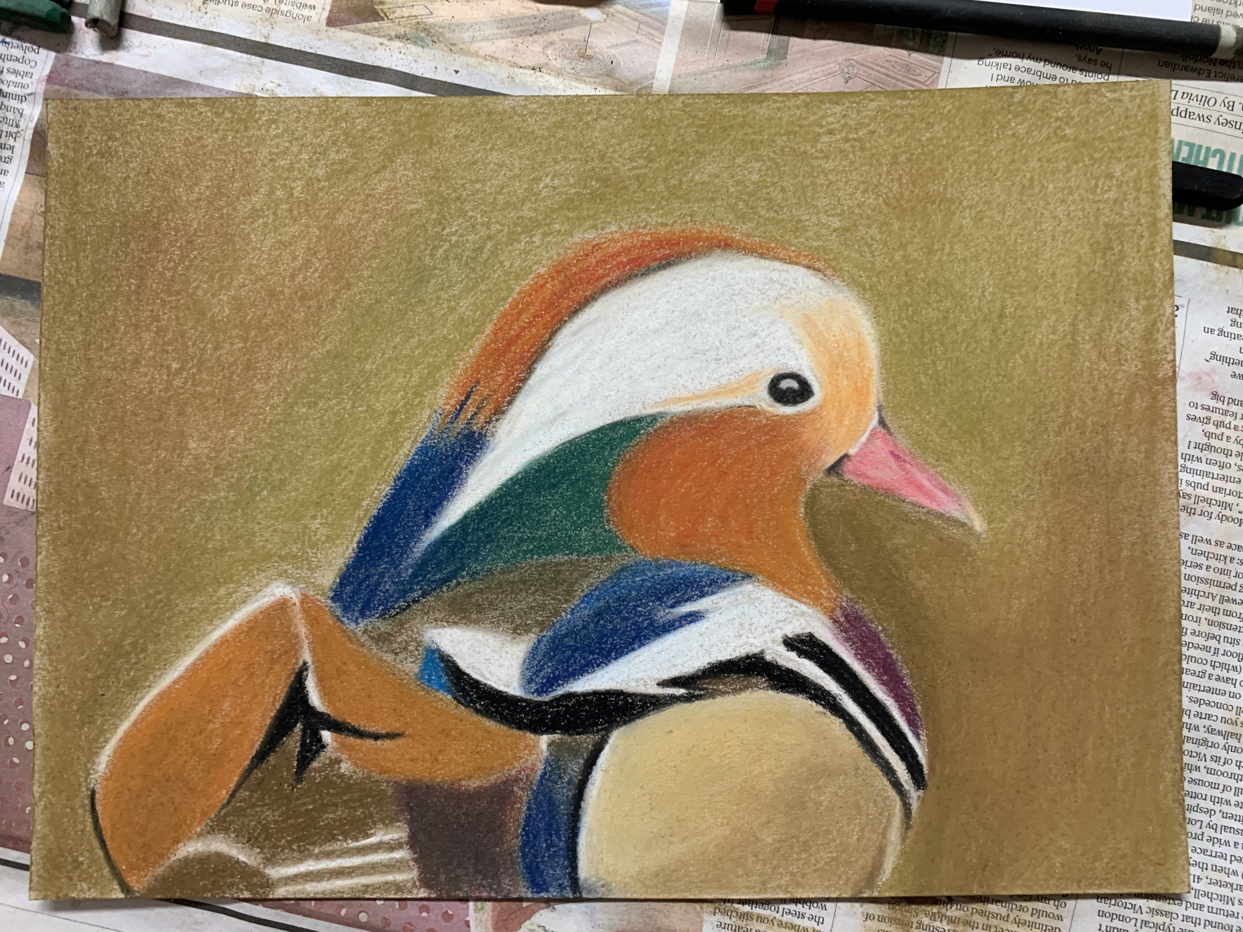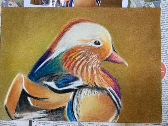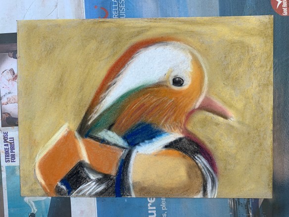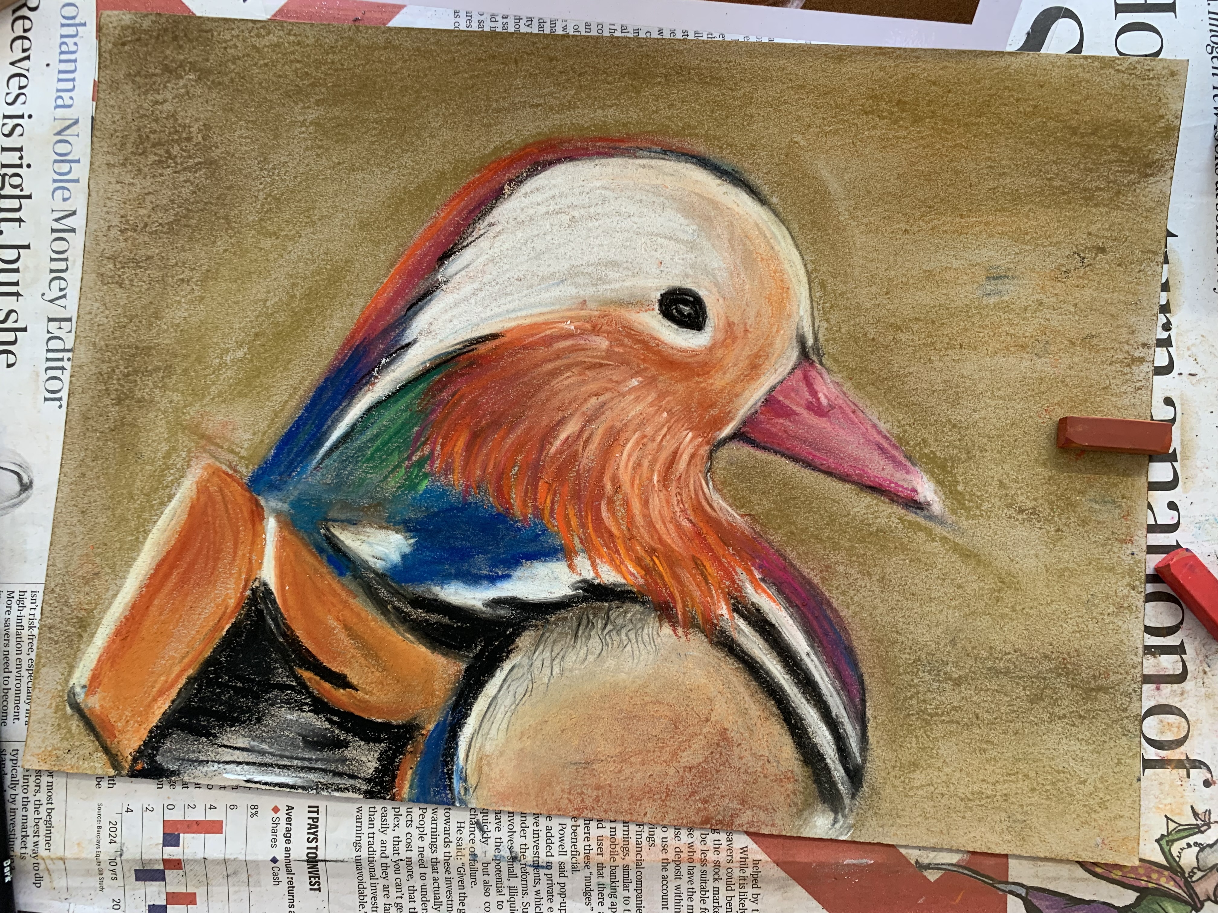 Time for a blast of colour and this male Mandarin ducks’ feathers gave us the perfect opportunity to use all those bold colours. We used soft pastel for these drawings which is great for really vibrant colours. Beautiful work everyone! Hope you all enjoyed it.