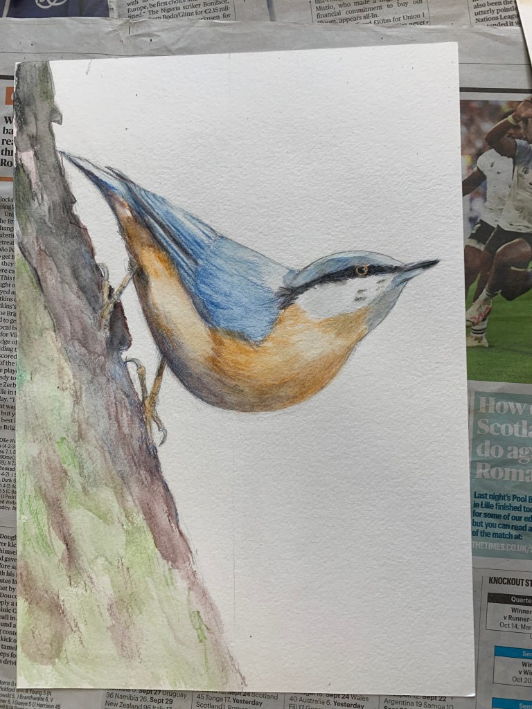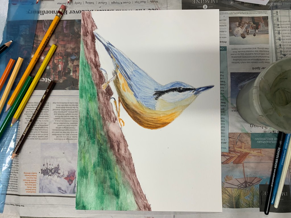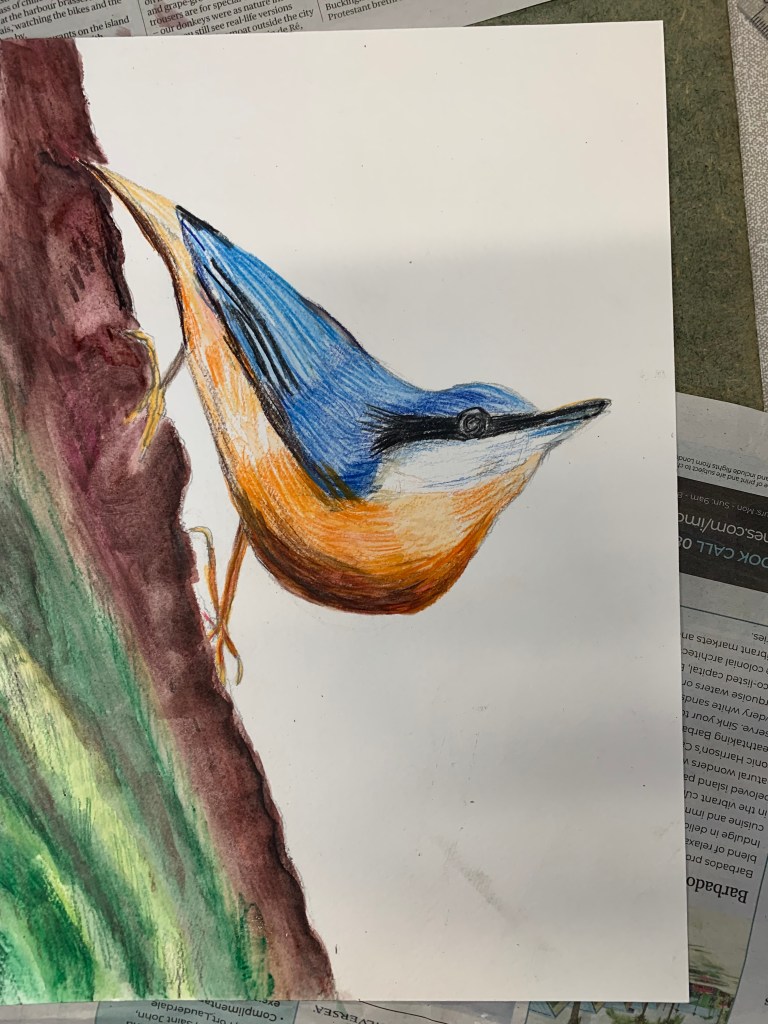This week we went nutty for Nuthatches! 🌰🐣These gorgeous little birds are perfect for practising colour mixing with their bluish and orange-ish colours. We used watercolour pencils to create these gorgeous paintings. Keep doing what you’re doing folks. I’m so pleased with the progress you’re all making! Fantastic work, well done!👏